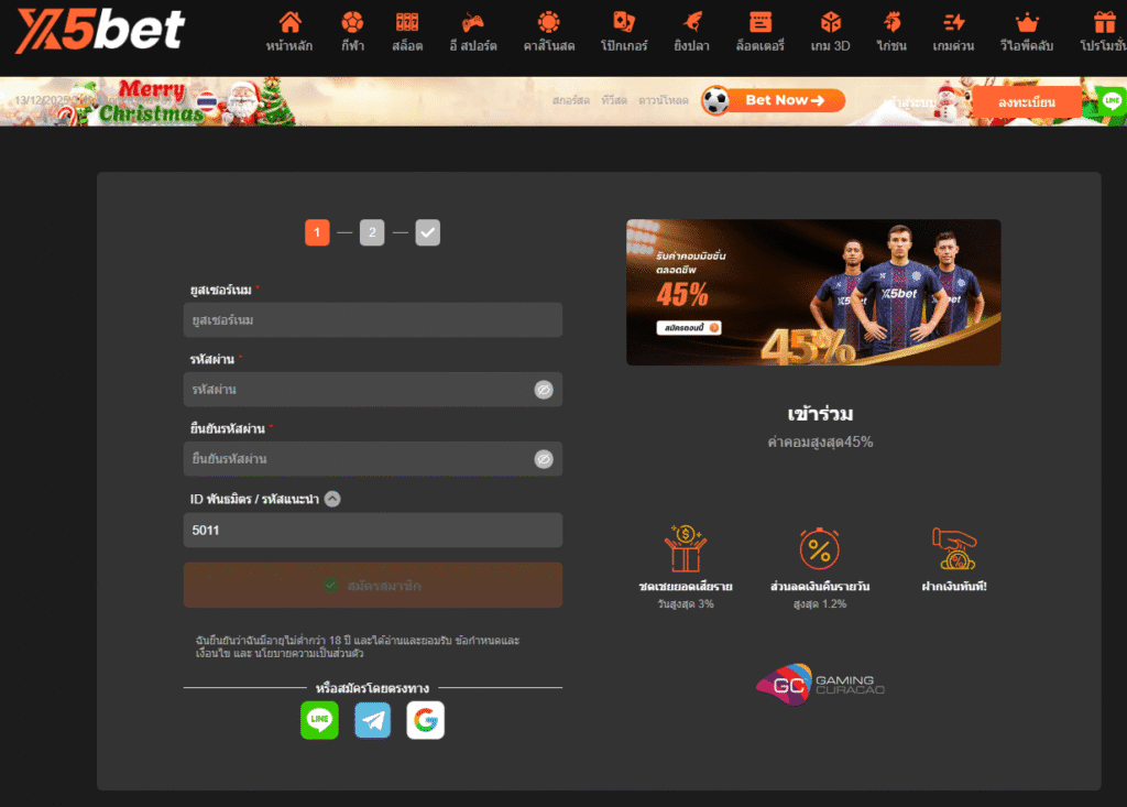 การลงทะเบียน X5BET จำเป็นต้องใช้ข้อมูลส่วนตัวที่ถูกต้อง ได้แก่ ชื่อ–นามสกุล ชื่อผู้ใช้งานสำหรับเข้าสู่ระบบ รหัสผ่าน หมายเลขโทรศัพท์ และวันเดือนปีเกิด รหัสผ่านควรประกอบด้วยตัวอักษรและตัวเลขตามเงื่อนไขของระบบ หมายเลขโทรศัพท์ต้องเป็นหมายเลขที่ใช้งานจริงและเป็นของผู้สมัครเอง เพื่อให้ข้อมูลสอดคล้องกับการใช้งานบัญชีในระยะยาว